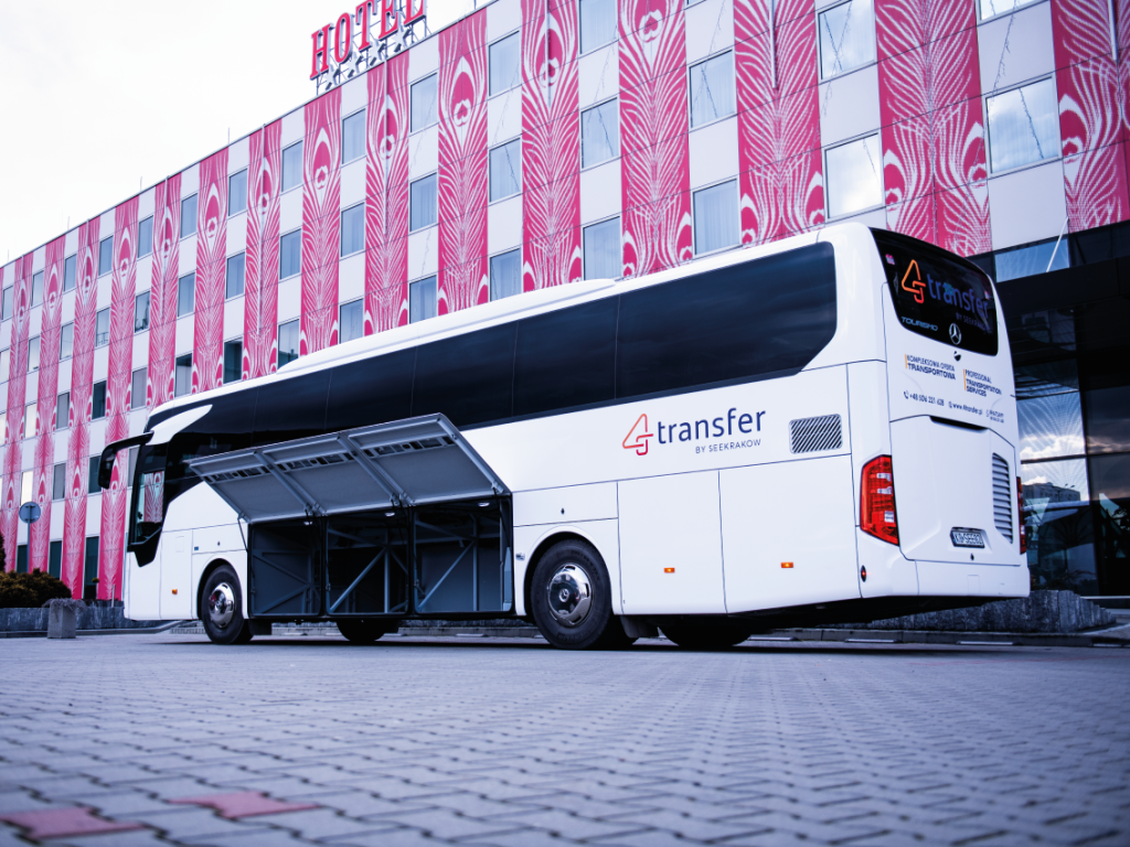 Najwięksi przedstawiciele naszej floty, autokary. Idealny wybór dla biur podróży, które poszukują transportu dla swoich turystów. Autobusy są klimatyzowane, posiadają system nagłośnienia wraz z mikrofonem, DVD, oświetlenie dla każdego miejsca oraz eleganckie wykończenia, wyposażone są w nowoczesne systemy bezpieczeństwa takie jak ABS, ASR, FCG, ABA 4, ESP, SPA, BAS. Niektóre modele posiadają także gniazda ładowania pod fotelami pasażerów co pozwoli na komfortowe naładowanie telefonu lub laptopa. Autokar wyposażony jest w 49+1 miejsc siedzących, w tym jedno siedzenie dedykowane pilotowi lub opiekunowi grupy, znajdujące się z przodu pojazdu.