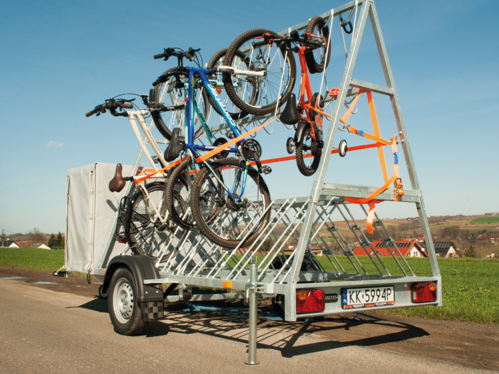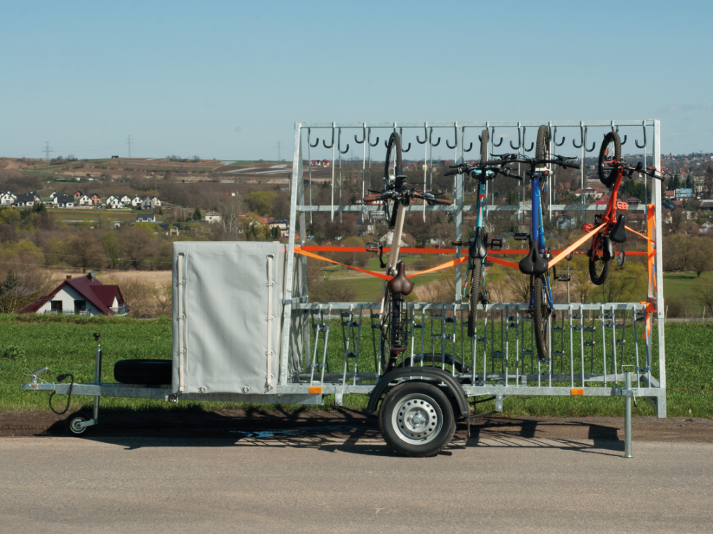 Przyczepka rowerowa na 22 rowery z przestrzenią bagażową stanowi doskonałe rozwiązanie dla osób planujących długą wycieczkę rowerową, wymagającą przewiezienia większej ilości bagażu. Mieścimy do 22 rowerów w bezpiecznej pionowej pozycji, oferując jednocześnie skrzynię na bagaże. Skrzynia jest kryta brezentem, zabezpieczającym bagaże przed niekorzystnymi warunkami pogodowymi. Dzięki odpowiednim rozmiarom i wadze, przyczepkę można zapiąć do każdego pojazdu. Oferujemy również możliwość samodzielnego wynajmu przyczepki rowerowej. Zapraszamy do zapoznania się z naszą propozycją w zakładce oferta.